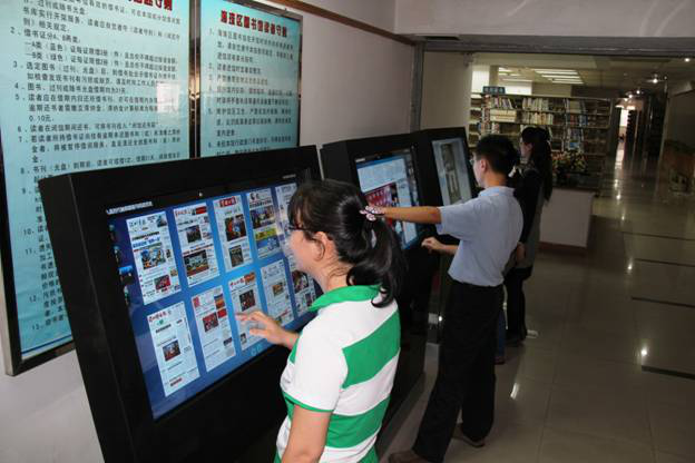 圖書館通常是整個(gè)學(xué)校的核心地帶,圖書館的公共區(qū)域安裝多個(gè)信息發(fā)布點(diǎn),可發(fā)布新書介紹、借書信息、還書到期日提示、發(fā)布通知、圖書種類等信息,有利于提高圖書管理員的工作效率和工作質(zhì)量;同時(shí)也為管理員和學(xué)生提供了一個(gè)電子化的溝通平臺(tái),使圖書館更好的為學(xué)生服務(wù)。