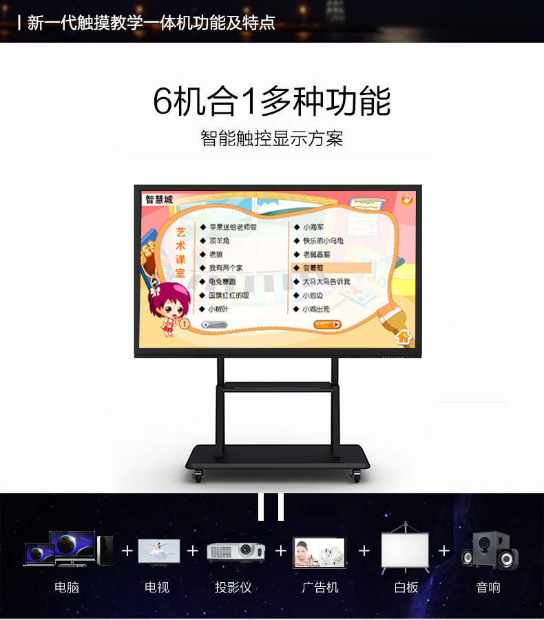 產(chǎn)品描述:JXM教學一體機智能互動教學新體驗,隨外部環(huán)境光線的強弱變化自動調節(jié)亮度,保護視力,緩解視覺疲勞,提高肉眼觀看的舒適度,節(jié)能環(huán)保。