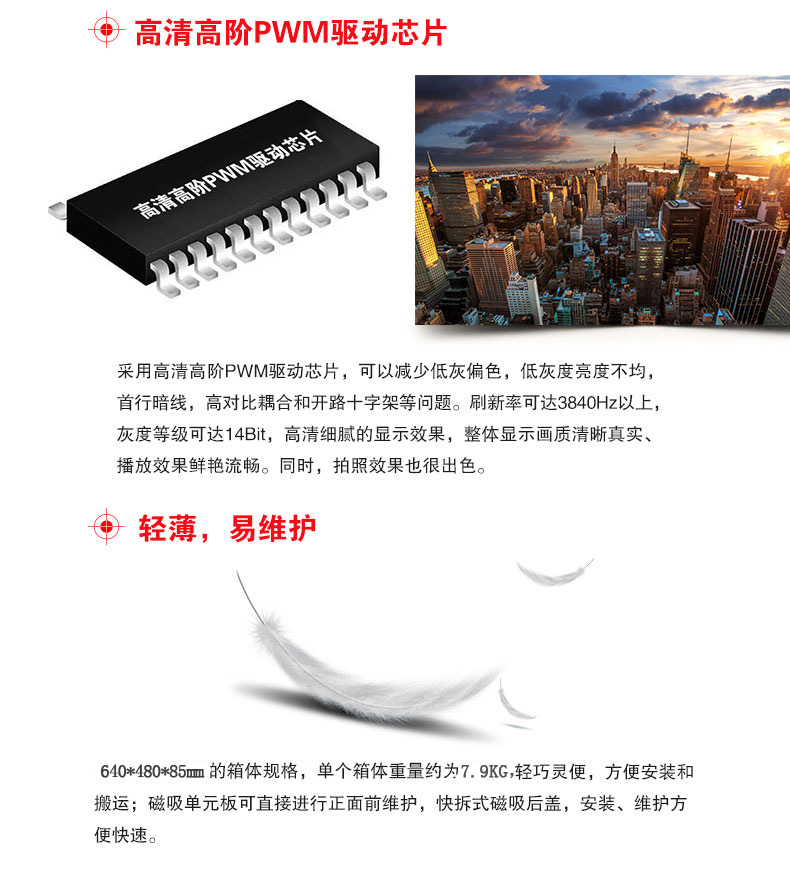 產(chǎn)品描述:室內(nèi)P1.839全彩單元板主要是由紅色LED晶片、綠色LED晶片、藍(lán)色LED晶片封裝在一個(gè)像素點(diǎn)中,然后再焊接到PCB板上而成。此單元板含有驅(qū)動(dòng)芯片和輸入緩沖芯片,連接到LED顯示屏控制系統(tǒng)即可顯示視頻、圖像和文字信息等。
