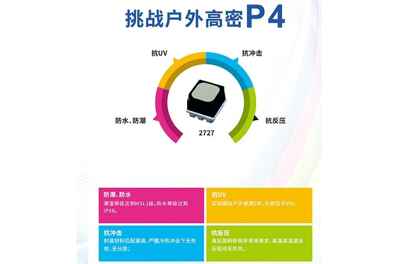 P4全彩顯示屏作為室外高端LED顯示屏代表,像素點(diǎn)間距僅為4mm,分辨率方面達(dá)到62500點(diǎn)/平米,可 以說(shuō)是名副其實(shí)的戶外超高清LED大屏幕。JXM全彩LED顯示屏性能穩(wěn)定,色彩逼真,播放畫面高清, 廣泛應(yīng)用于戶外廣告畫面展示用途,具有防水防風(fēng)防塵功能。